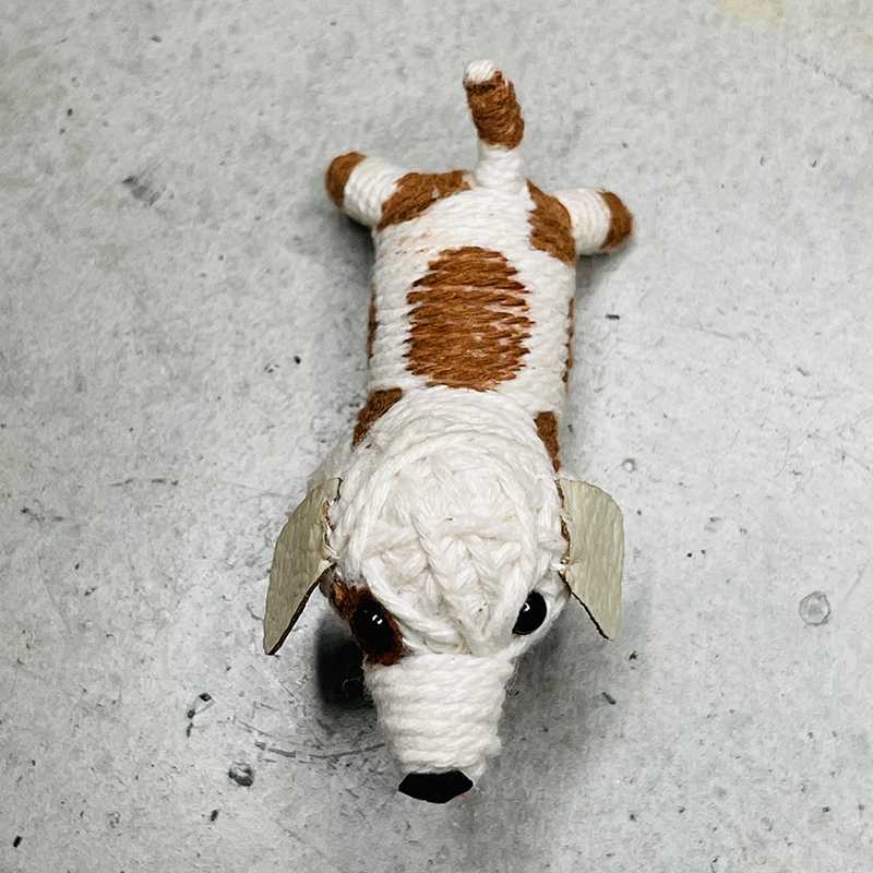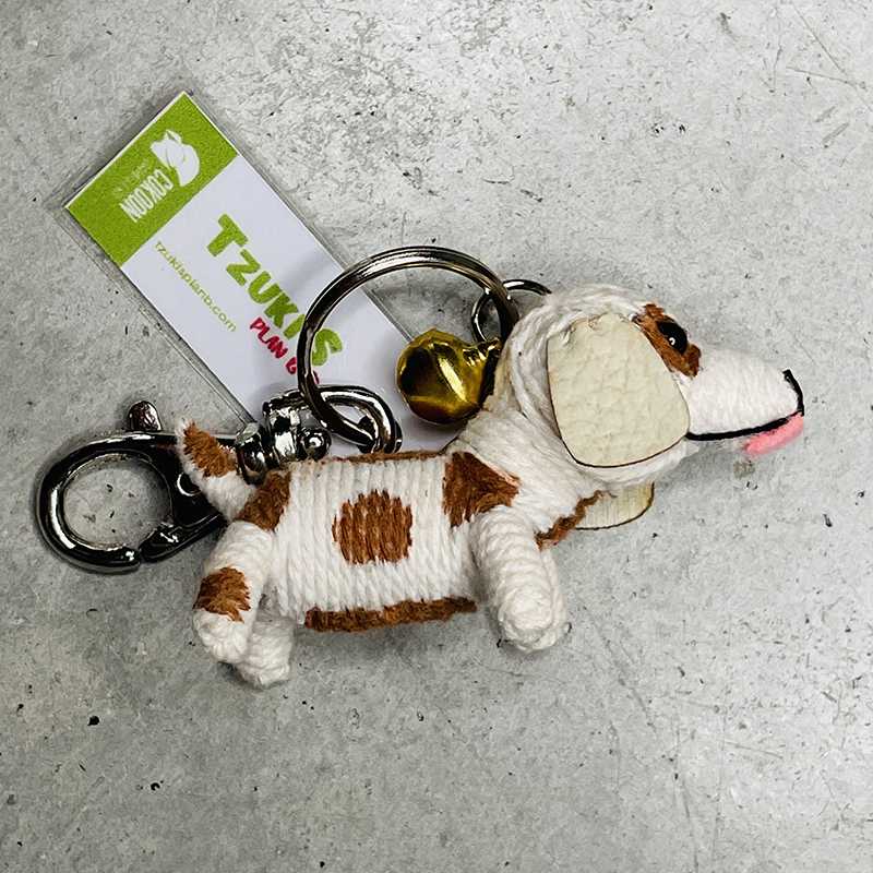 Este es Fufi, el compañero más leal de Tzuki. No encontrarás un guardián más adorable para tus llaves que este muñeco de perro de hilos.